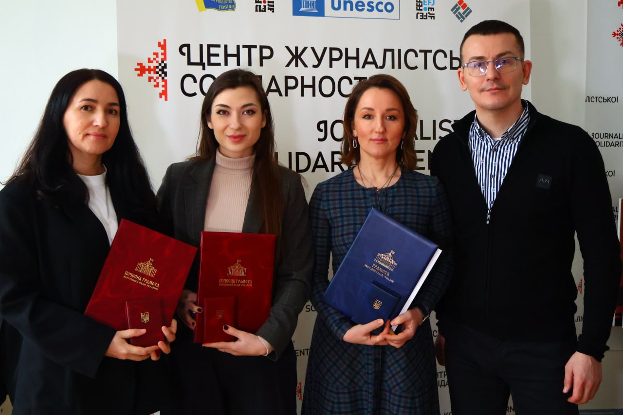 Відзнаки були вручені ще двом воєнним журналісткам — Ользі Каліновській (5 канал) та Ірині Сампан.