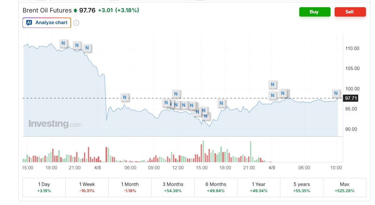 Ціни на нафту 9 квітня відновили зростання, частково відіграючи падіння попереднього дня, яке відбулося після новин про двотижневе перемир’я між США та Іраном.