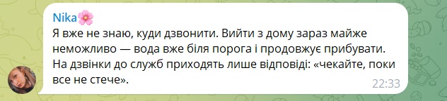 "На Масленіківці затоплює двори. З хати вийти неможливо. Води по коліно. Гаряча лінія не працює.Всім наплювати і на людей і на тварин", - пишуть кропивничани.