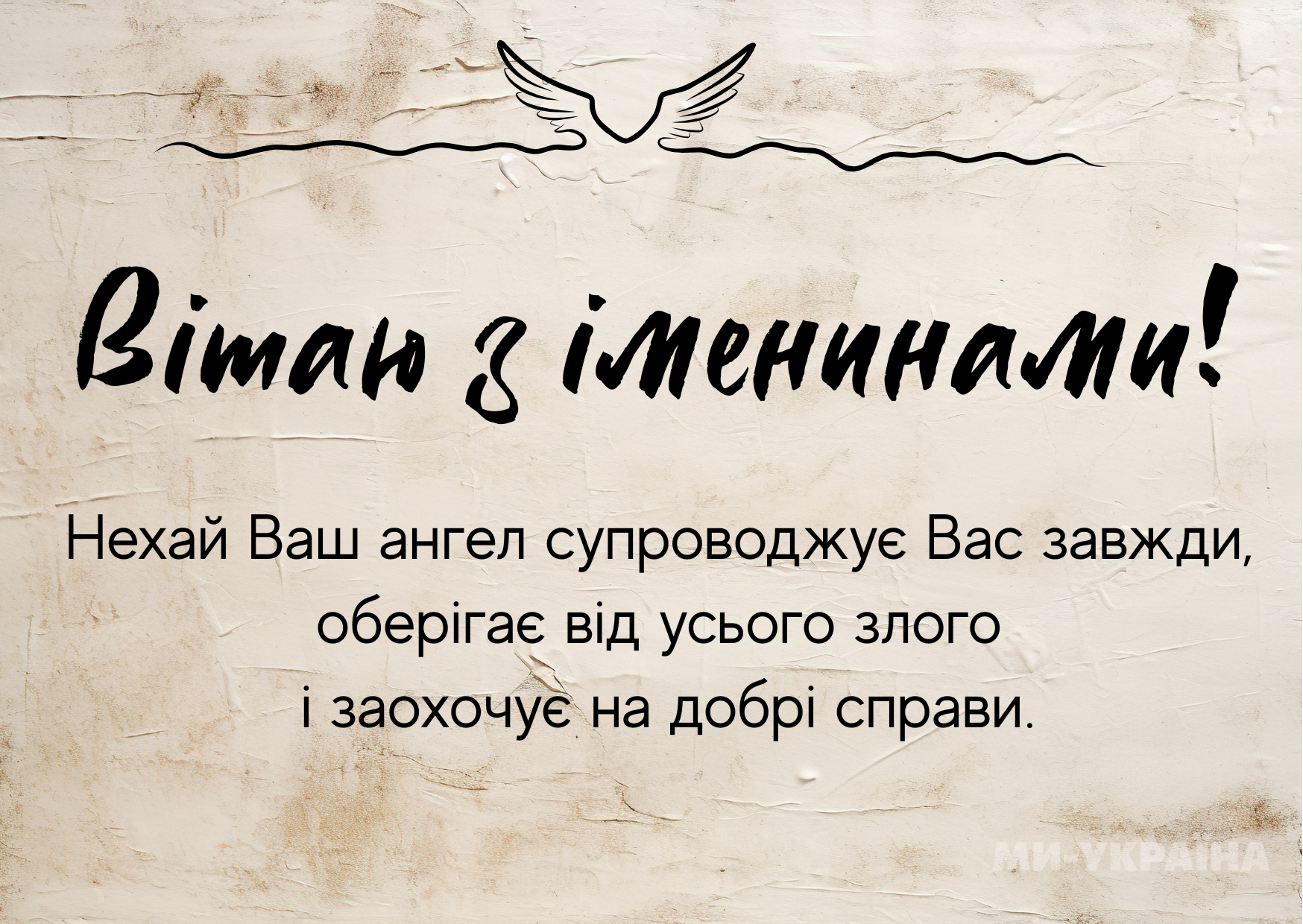 З Днем ангела! Бажаю, щоб життя було наповнене гармонією, щастям і добром. Хай ангел тримає тебе під своїми крилами, а Господь веде до світла й любові!