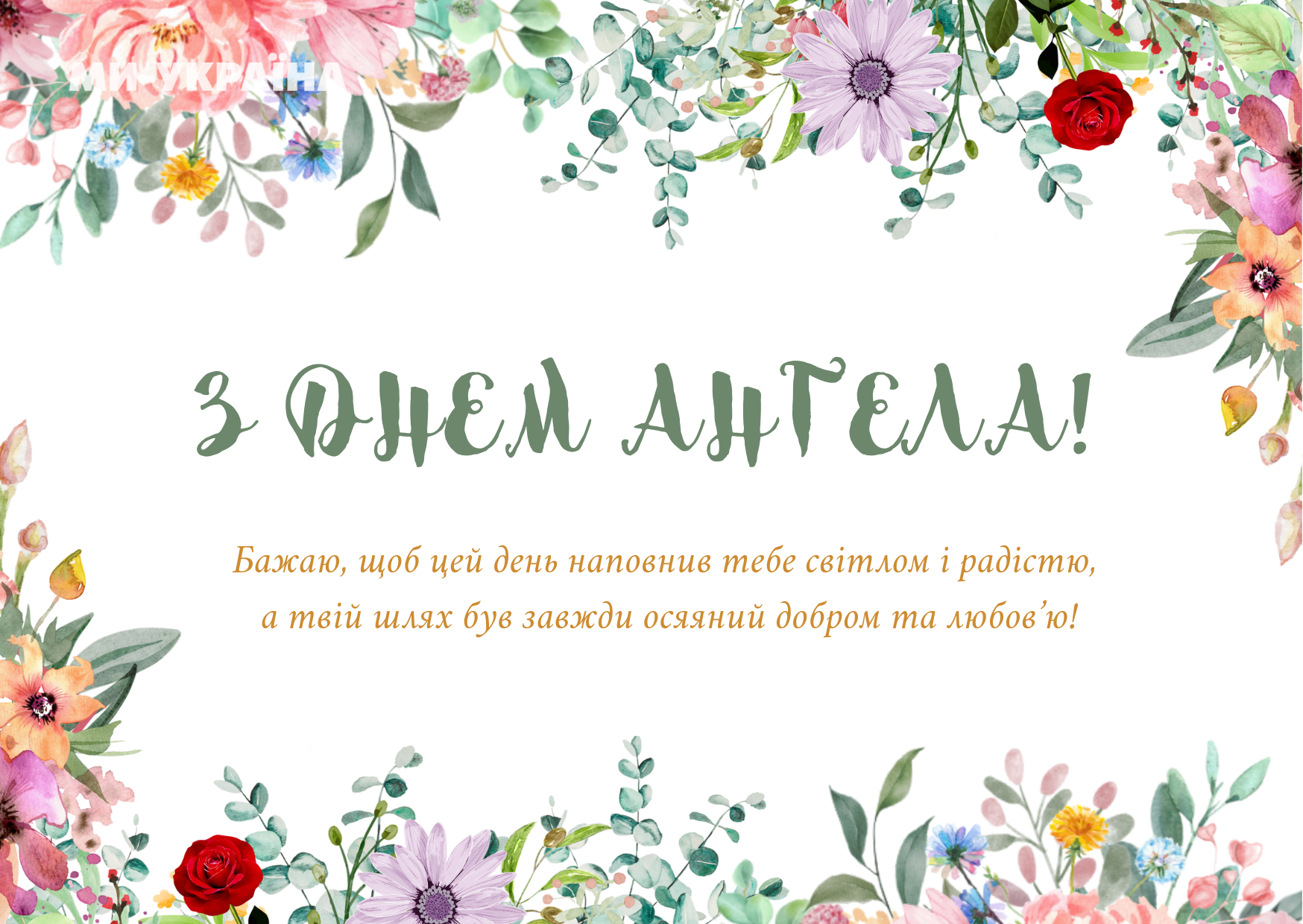Нехай ангел-охоронець береже тебе щодня, підтримує у складні хвилини й веде стежкою миру та добра. Хай Господь благословить твою родину здоров’ям і любов’ю!