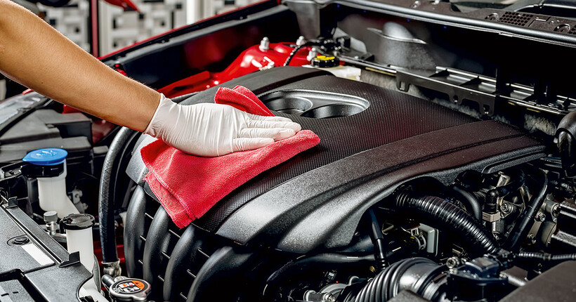 Для двигуна підходять лише спеціальні автоочисники – engine cleaner. У жодному випадку не використовуй побутову хімію, адже вона пошкоджує метал і пластик. Хороший засіб для двигуна має бути безпечним для пластику, гуми й електрики, не містити аміаку та агресивних розчинників. Найзручніший формат - піна або спрей.