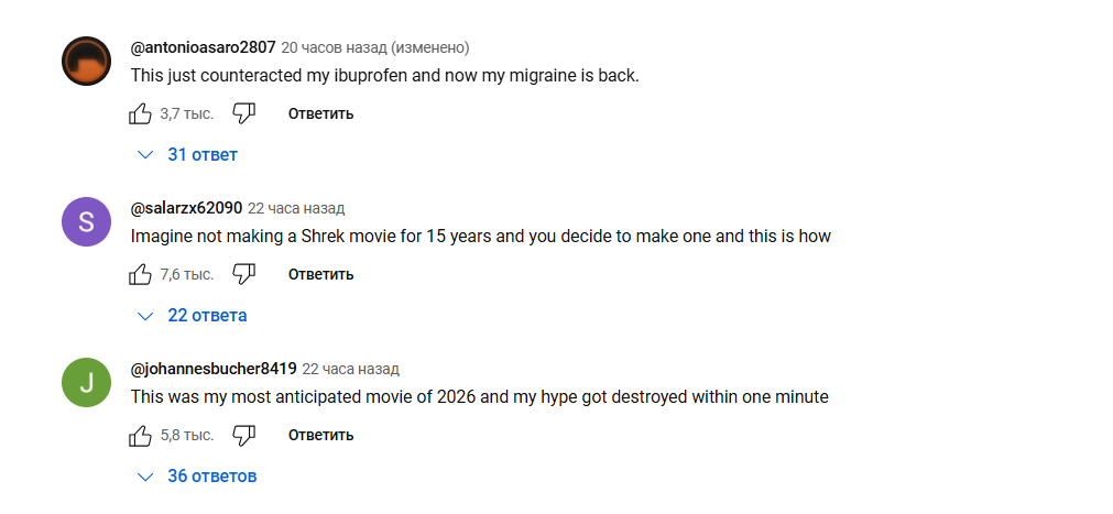 - "Уявіть, не робити Шрека 15 років і раптом ви вирішуєте, що час настав, і видаєте ОСЬ ЦЕ", — обурюється інший користувач.
