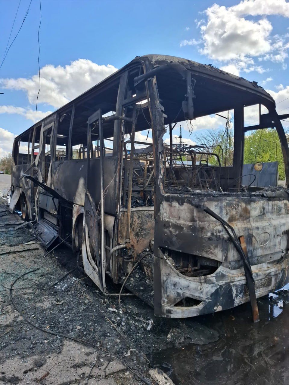 "Медики встигли вчасно покинути транспорт - ніхто з них не постраждав. Автобус вигорів вщент", - йдеться в заяві.
