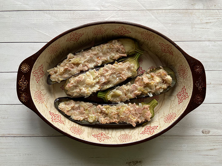 Готувати фаршировані тунцем баклажани досить просто і великої кількості продуктів, "важких" девайсів чи багато часу вам для цього не знадобиться.