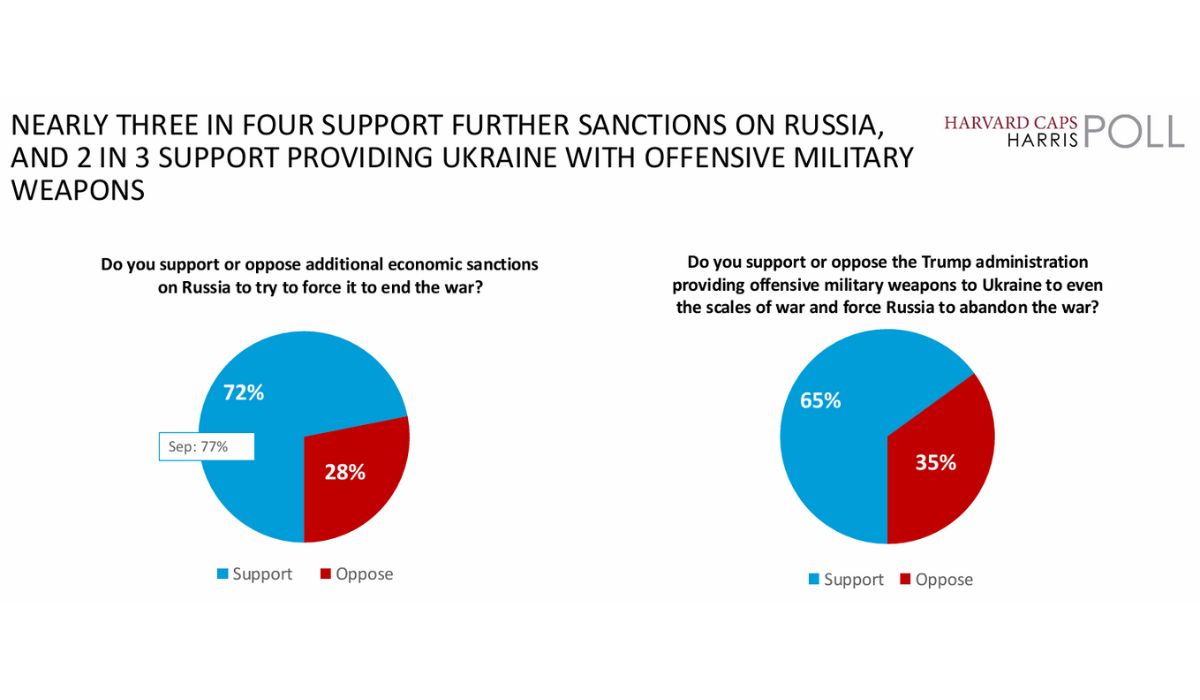 Анкетування проходило з 4 по 6 листопада у Сполучених Штатах. Варто зауважити, що 65% громадян США підтримують ініціативи очільника Білого дому, спрямовані на завершення війни в Україні.
