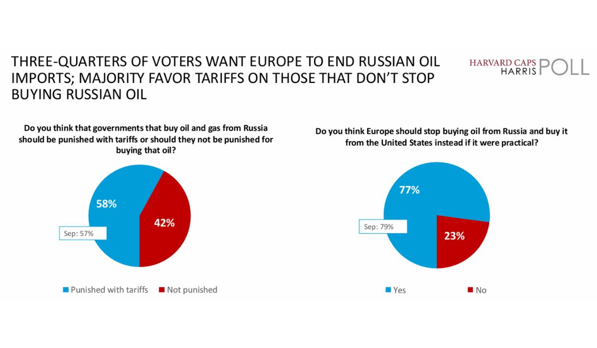 Крім того, три чверті американців переконані, що європейські країни мають відмовитись від закупівлі російських енергоресурсів і закуповувати їх у США, навіть якщо це потребуватиме глибших економічних змін на європейському континенті.
