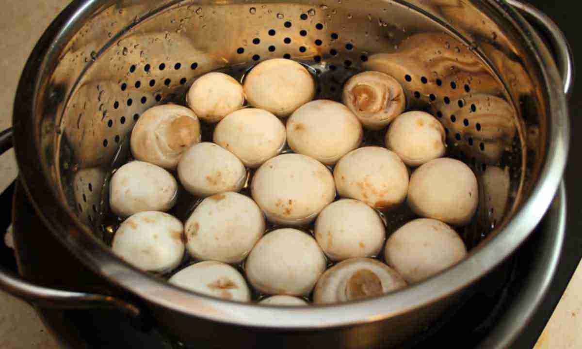 Шампіньйони ретельно промийте під проточною водою. Знімати шкірку з капелюшків, особливо, якщо грибочки маленькі - не обов'язково.