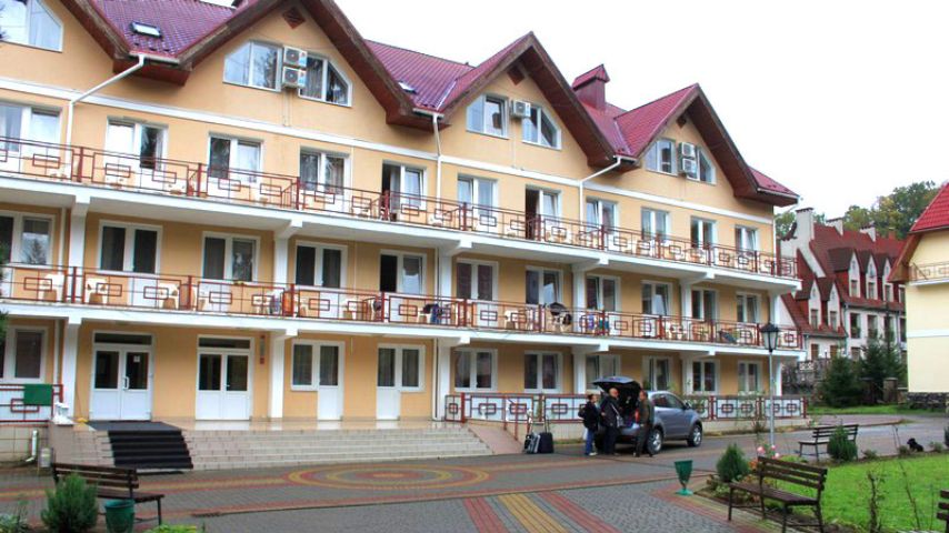 - Санаторій пропонує гостям ресторани, дитячі та спортивні зони.