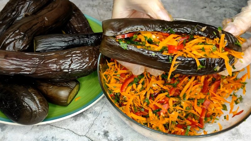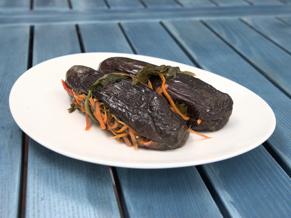 Головний секрет рецепта криється в тому, що баклажани повинні кваситися спільно з іншими овочами та спеціями. Саме за рахунок цього вони стають дуже ароматними й насиченими на смак.