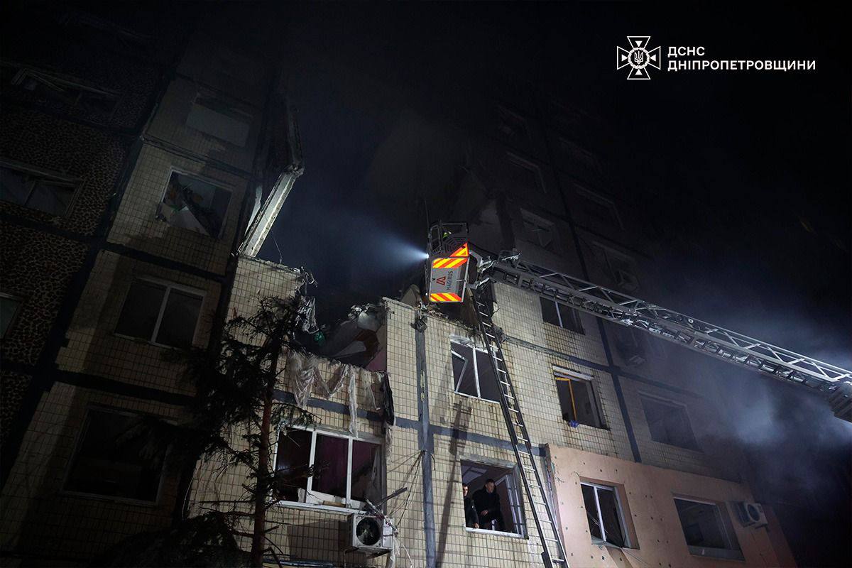 За словами очільника держави, наразі триває рятувальна операція в Дніпрі. Росіяни вночі влучили у житловий будинок, внаслідок чого постраждали 11 осіб, серед них є і діти. Відомо про одну загиблу людину. Він висловив співчуття близьким та рідним. Попри це рятувальникам вдалося вивести десятки осіб.
