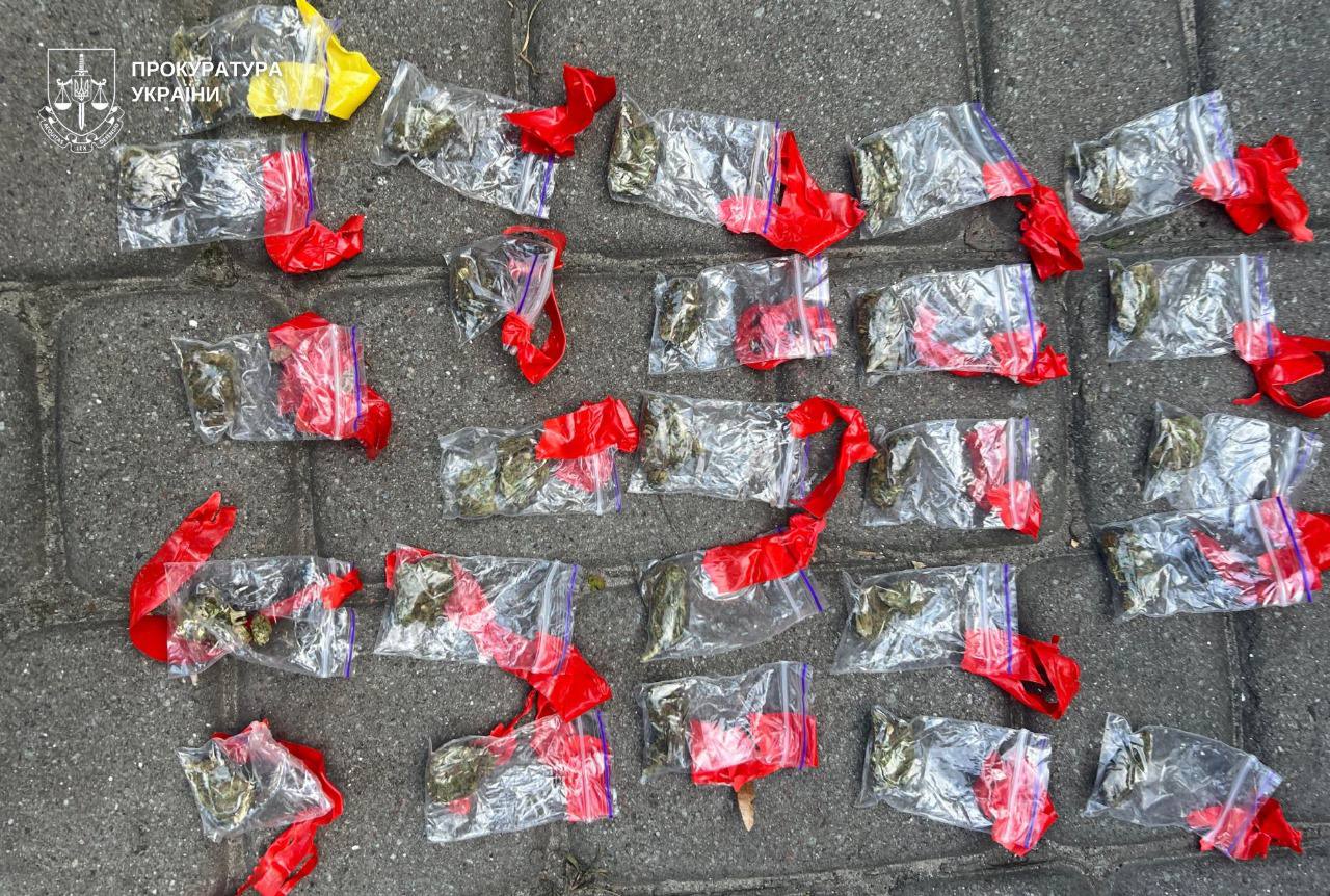 Під час чергової "закладки" жінку затримали. У дитячому рюкзаку виявили 25 згортків канабісу. Під час обшуків вилучили ще 74 закладки, ваги та два великі "мастер-клади" з мефедроном загальною масою понад 6,5 кг.