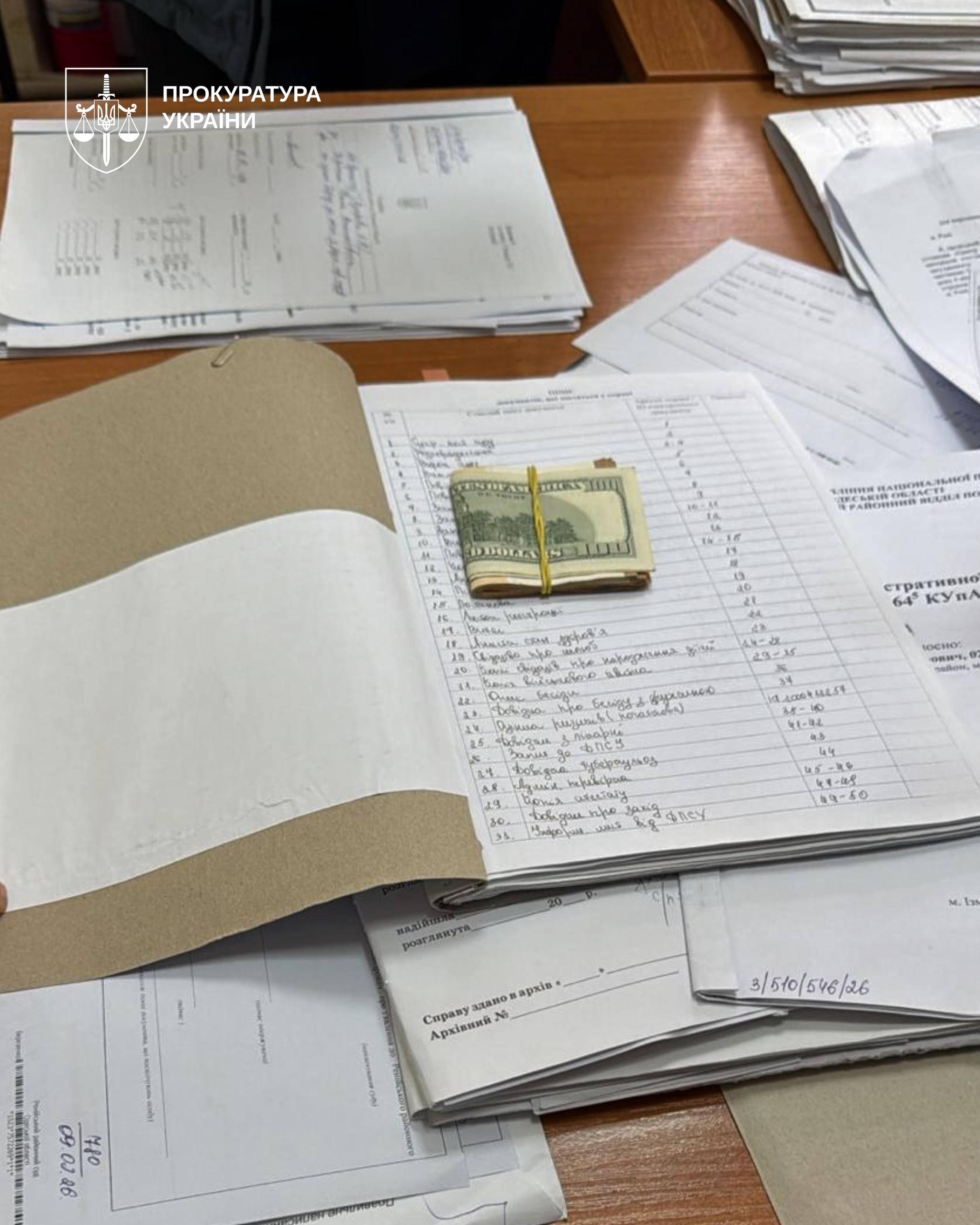 Правоохоронці затримали суддю під час отримання від "клієнта" 800 євро та 300 дол. неправомірної вигоди. Затримання відбулося 5 березня 2026 року. Того ж дня судді оголосили підозру за ч. 3 ст. 368 КК України.