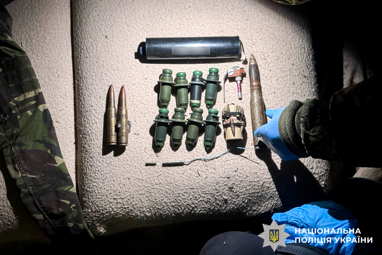 Працівники карного розшуку за силової підтримки спецпризначенців РПОП затримали підозрюваного. Під час обшуку в нього вилучили два складні ножі. Крім того, у помешканні знайшли димову гранату, артилерійський постріл,, запал до гранати електродетонатор, сповільнювач до підривача, імітаційну протипіхотну міну, 18 куль різного калібру, вісім боєприпасів та два патрони.