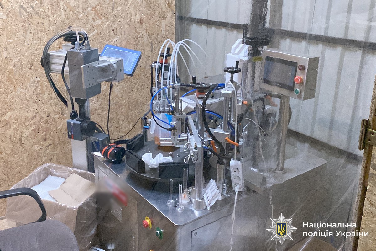Крім того було виявлено спеціалізоване обладнання, зокрема конвеєрну лінію для автоматичного фасування, маркування та наклеювання етикеток, установки для заливання нікотину і інших рідин в ампульні упаковки з подальшим запаюванням, компресори та наливні апарати.