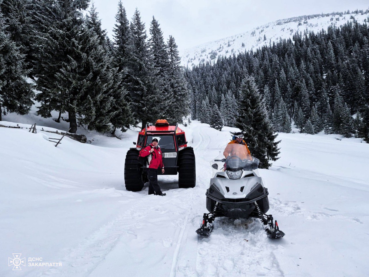 Рятувальники оперативно прибули в район полонини Балцатул. Потерпілих зігріли гарячим чаєм, після чого снігоходом по черзі доправили до всюдихода "Богун".