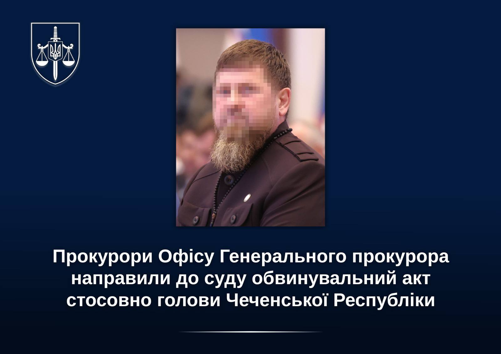 Прокурори Офісу Генерального прокурора скерували до суду обвинувальний акт щодо очільника Чеченської Республіки рф Рамзана Кадирова.