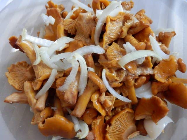 - Відварені лисички покладіть у попередньо приготований маринад з апельсинової цедри, гірчичних зерен, часнику та кропу. Через кілька днів грибочки стають ароматними і матимуть легку нотку цитрусу.