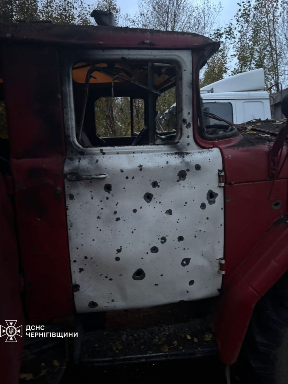 Обстріл рятувальників під час ліквідації наслідків попередньої атаки на Семенівську громаду Чернігівщини пошкодив пожежний автомобіль, але, на щастя, обійшлося без постраждалих.