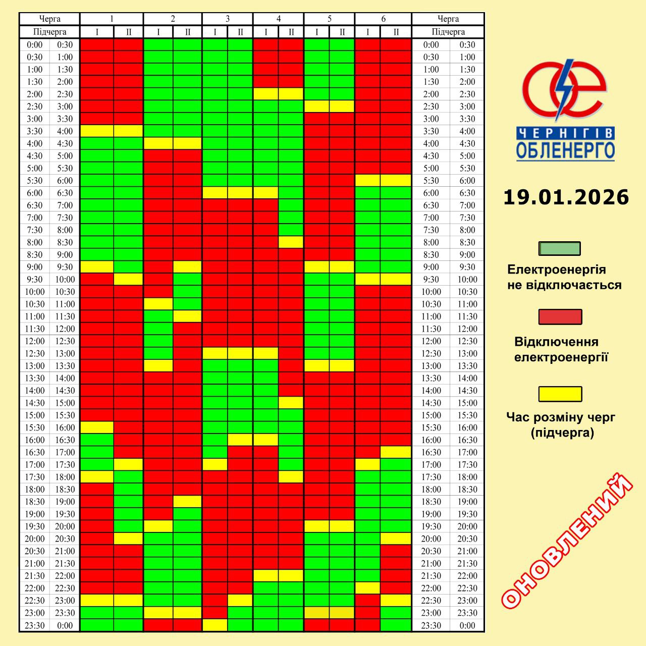 Згодом в обленерго попередили про додаткові зміни у ГПВ на 19 січня.