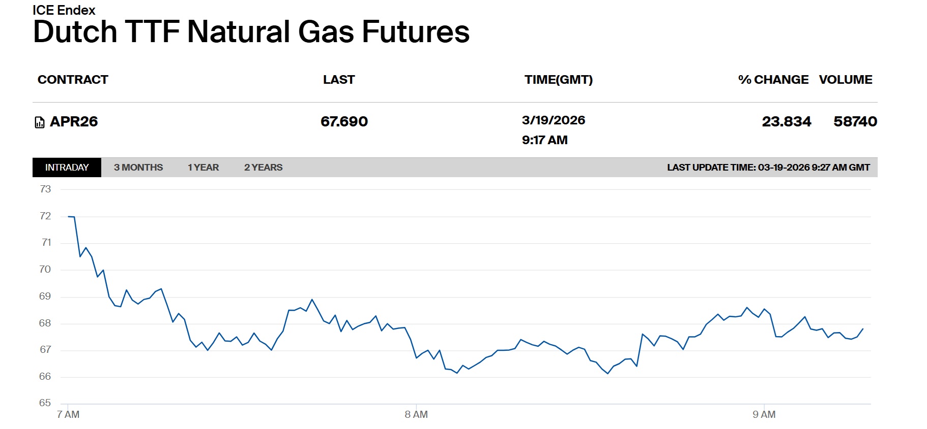 Ф’ючерси на європейський газ 19 березня злітали на 35%. Наразі енергоносій торгується на 23,8% вище - близько 67,7 євро за мегават-годину. Загалом вартість вже більш ніж удвічі перевищує довоєнний рівень.