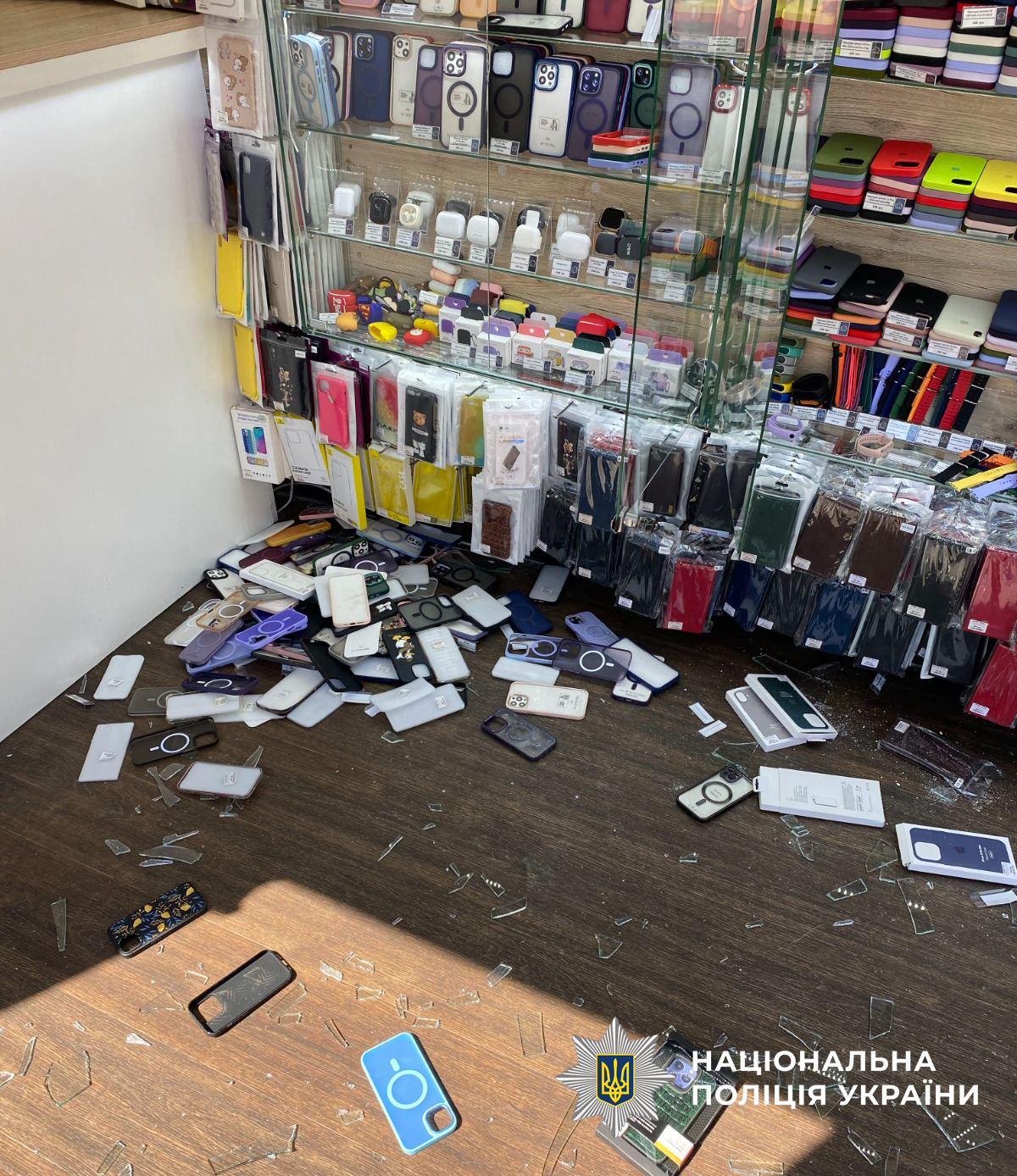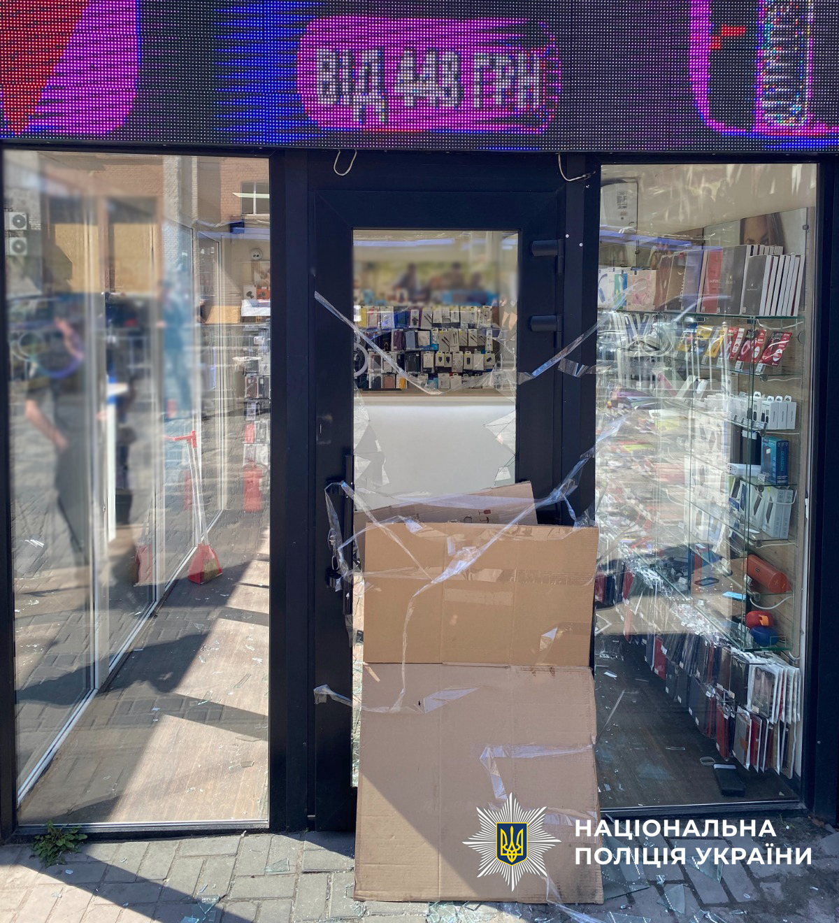 Правоохоронці повідомили, що до них звернулась власниця магазину з гаджетами щодо скоєного злочину. Жінка повідомила, що в нічний час доби невідома особа розбила вхідні скляні двері до приміщення магазину і здійснила пограбування.