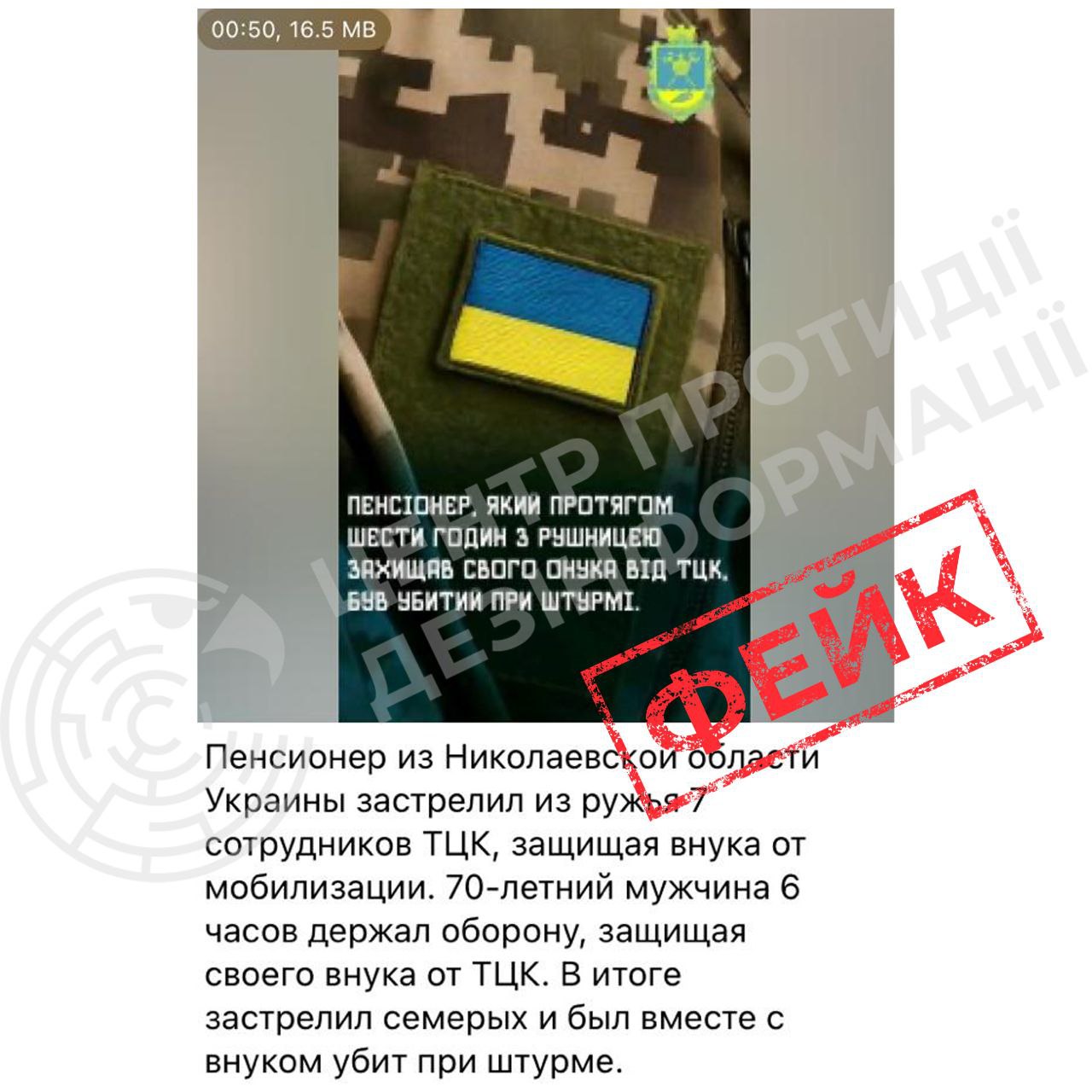 У фейкі поширюють інформацію про те, що нібито мешканець Миколаївщини "застрелив сімох працівників ТЦК". Також у фейкі йдеться про те, що чоловік нібито "шість годин обороняв свій будинок і загинув у ході штурму будинку".