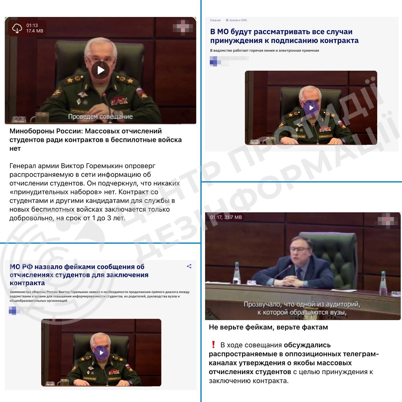 Зазначається, що російське Міноборони виступило зі "спростуванням" інформації про масові відрахування студентів з навчальних закладів росії із подальшим тиском на хлопців для підписання контрактів з армією рф.