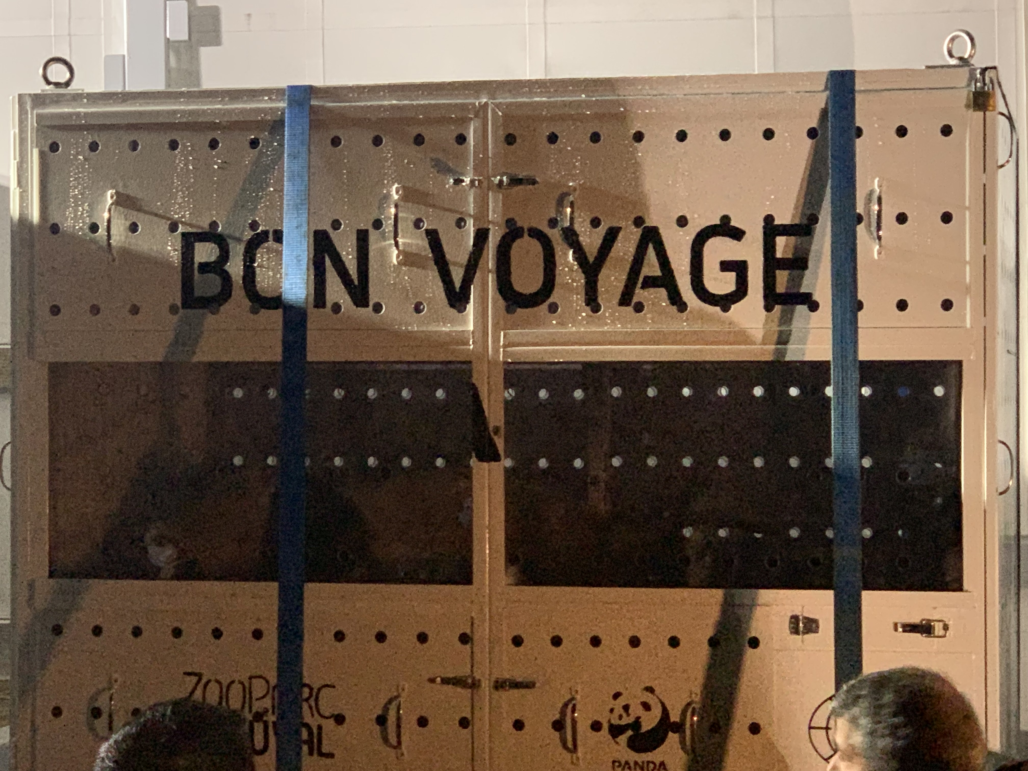 Панд завантажили в окремі просторі транспортні контейнери з вентиляцією та написом Bon voyage. Попри те, що за контрактом вони мали залишатися у Франції до 2027 року, ветеринари двох країн домовилися, що переїзд зараз буде безпечнішим.
