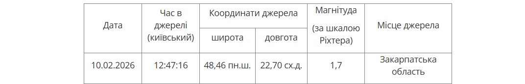 Землетрус у Закарпатській області стався 10 лютого, підземні поштовхи зафіксували о 12:47 поблизу міста Мукачево. По це інформує Головний центр спецконтролю.