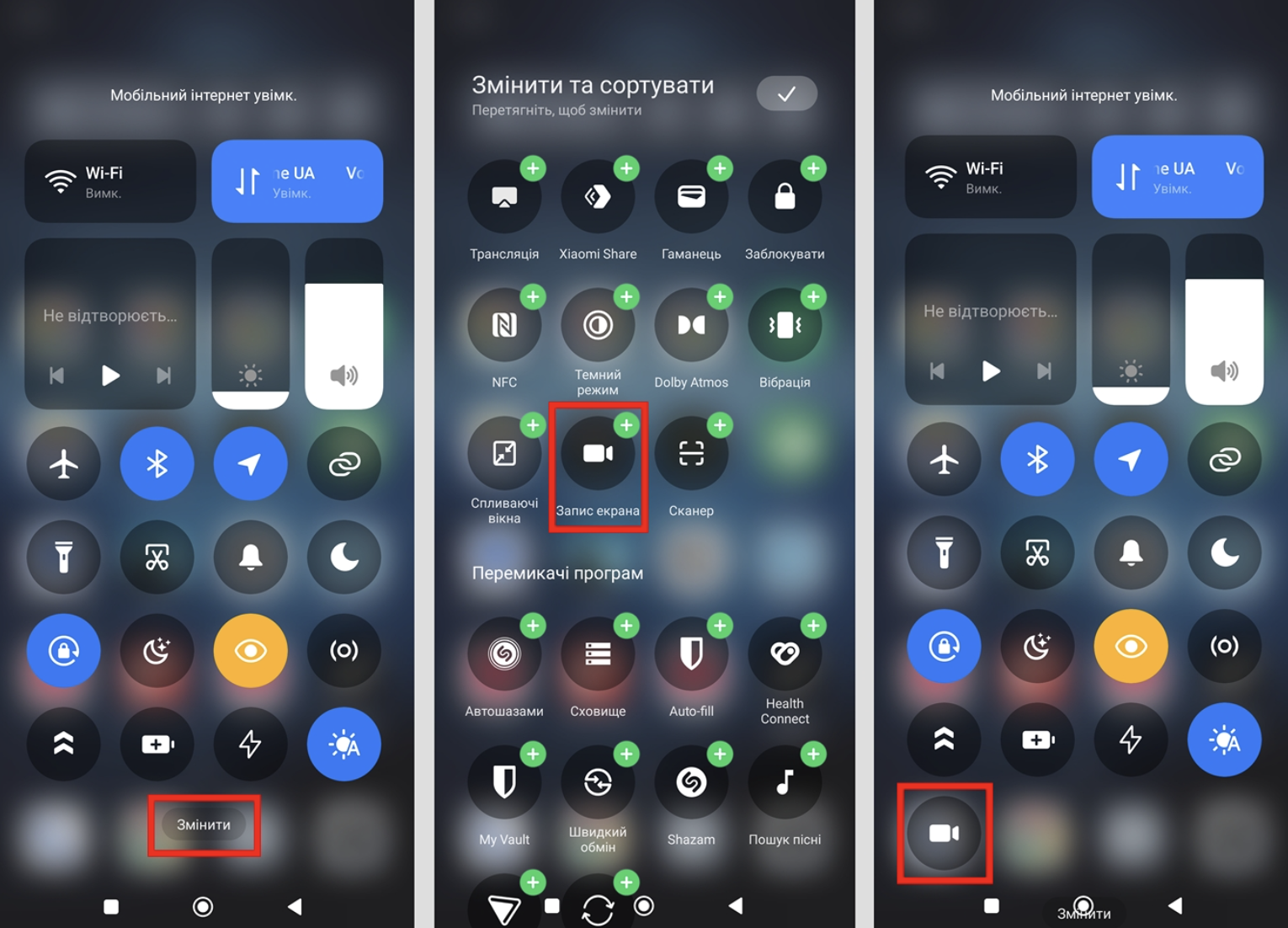 - Натисніть "Запис екрана".