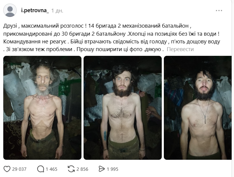 Резонанс навколо ситуації виник після публікацій у соцмережах, де з’явилися фото виснажених військових. Донька колишнього бійця бригади написала, що військові перебувають на позиціях без їжі та води, втрачають свідомість і змушені пити дощову воду.